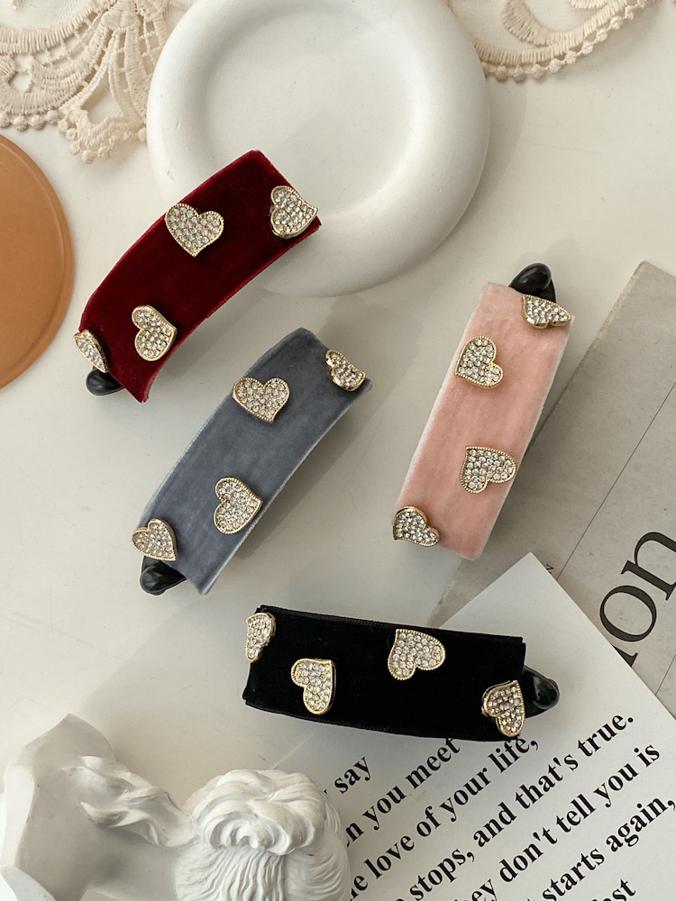 벨벳하트큐빅 조개 웨이브 올림머리 헤어 집게핀 4color