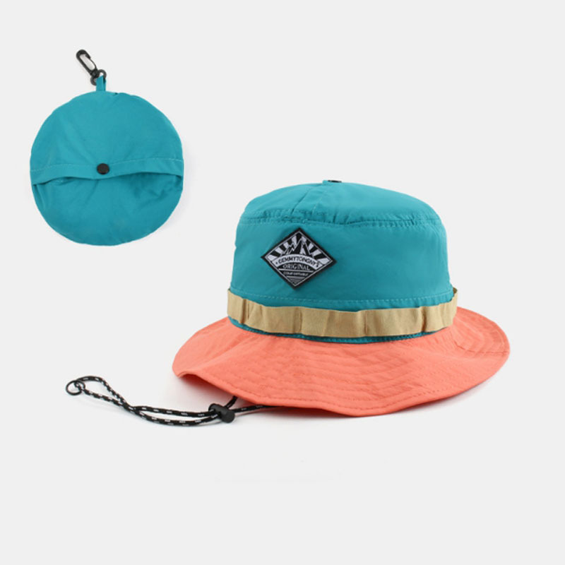 컬러 배색 서핑모자 캠핑 해외여행 모자 접을수있는 턱끈 끈달린 벙거지 버킷햇 바스락