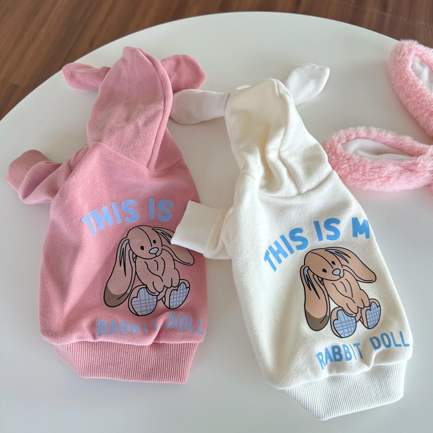 강아지옷 발열 토끼 후드티 강아지 티셔츠 S