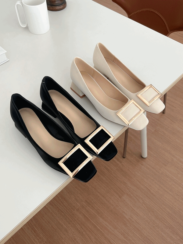[단독] 벨벳 골드 사각 장식 쿠션 몰드창 펌프스 힐 구두