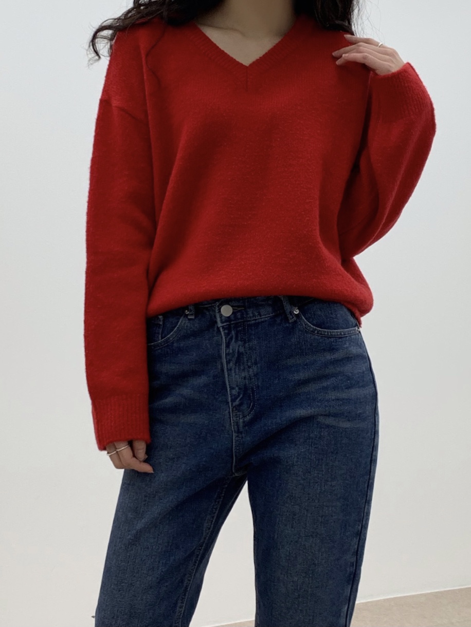 [클리어런스 시즌오프 30%할인] 메리 브이넥 울 니트 - 6 color / 크리스마스 연말 레드 빨간 니트/ 레드 당일발송 가능