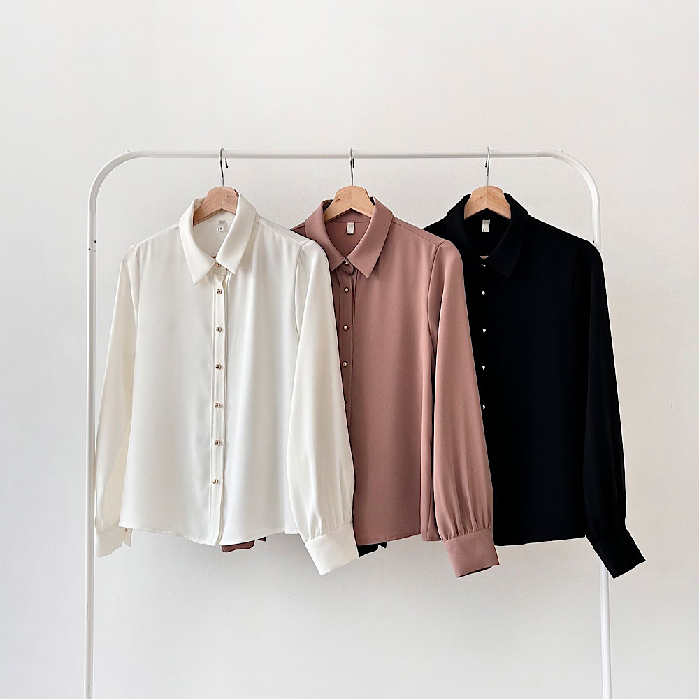 하객룩 결혼식 단추 셔츠 면접 정장 검정 아이보리 베이지 루즈핏 직장인 이너 블라우스