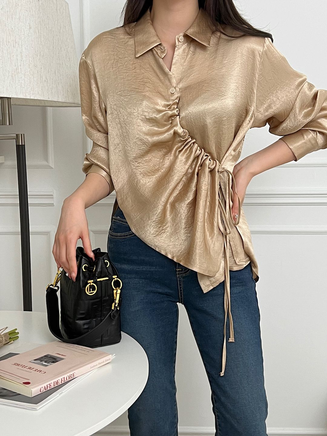 아레나블라우스 (셔링 사선 언발런스) - 베이지, 연카키