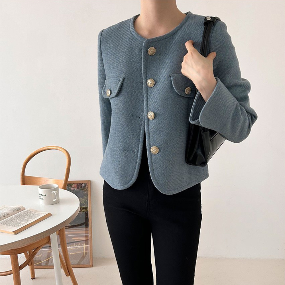 여자 가을하객 올드머니룩 단정한 금색단추 숏자켓