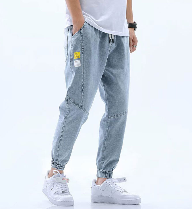 [5사이즈] 조거절개밴딩청바지 남여공용 밴딩청바지 워싱 데님 청 남성밴딩청바지 남자밴딩청바지 여성밴딩청바지 여자밴딩청바지 오버사이즈 조거바지 조거데님팬츠 조거팬츠 커플청바지