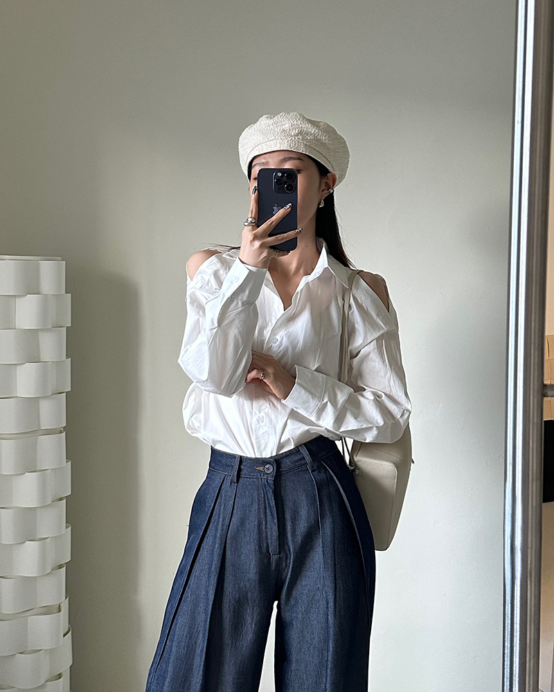 피트 어깨 트임 오프숄더 루즈핏 셔츠 (2color)
