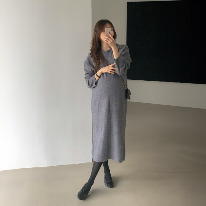 [라벨D]크로슈 라운드 니트원피스*임부복