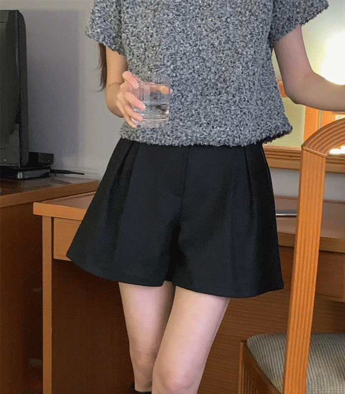 모넷 모직 팬츠 / 3부 4부 핀턱 모직반바지 겨울반바지 기본반바지 심플 베이직 데일리 데이트룩 출근룩 여행룩 결혼식 하객룩 포인트룩 여친룩 여리핏 예쁜핏