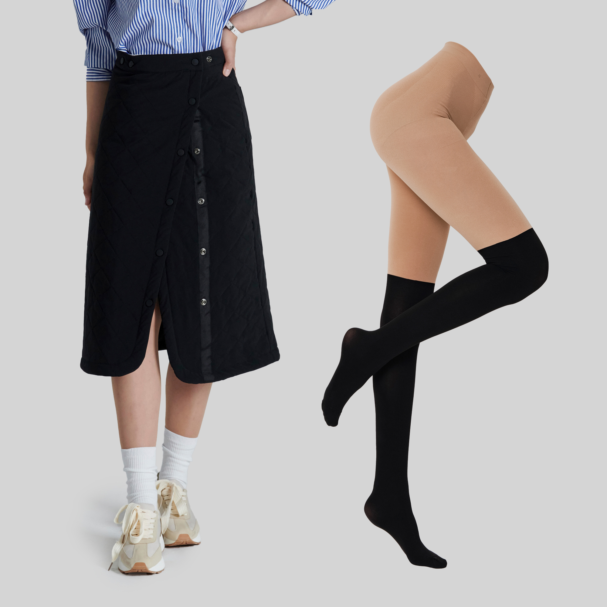 [패딩스커트+투톤스타킹✔당일출고🚀]패딩 랩 스커트 퀄팅 보온 여성 방한 롱 치마 스커트