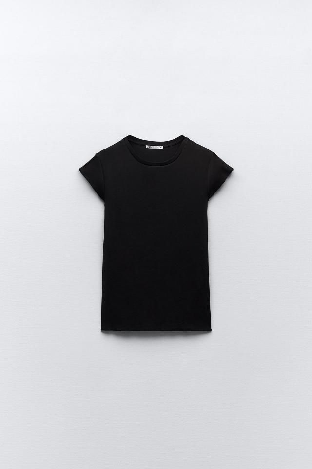 자라 리브드 라이트 코튼 티셔츠 4174/172 BLACK