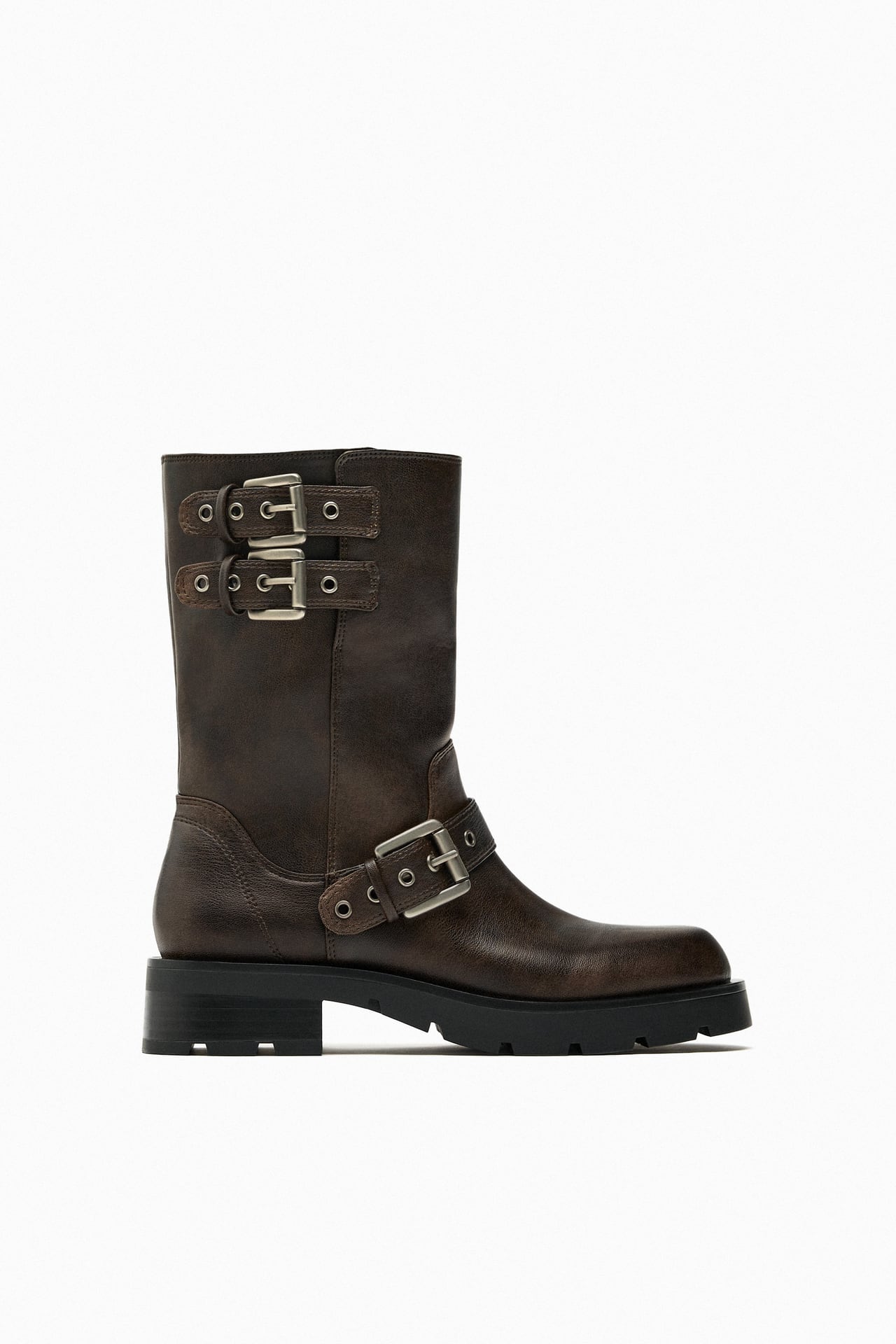 자라 버클 플랫 바이커 앵클 부츠 1121/210 BROWN
