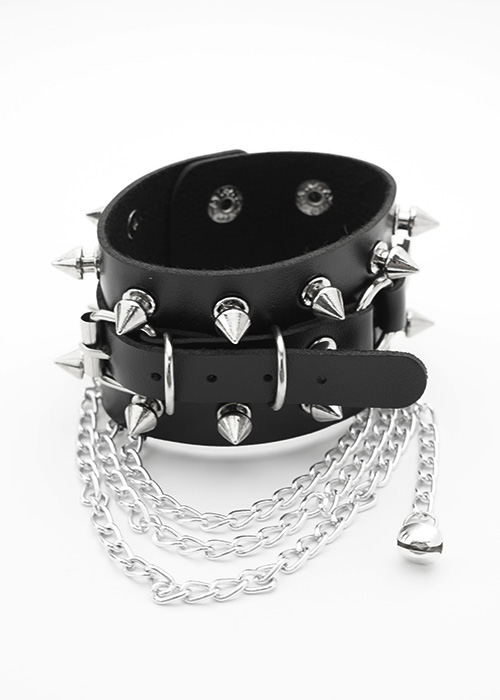 펑키 뾰족 스터드 체인 포인트 래더 블랙 가죽 팔찌 B-0124