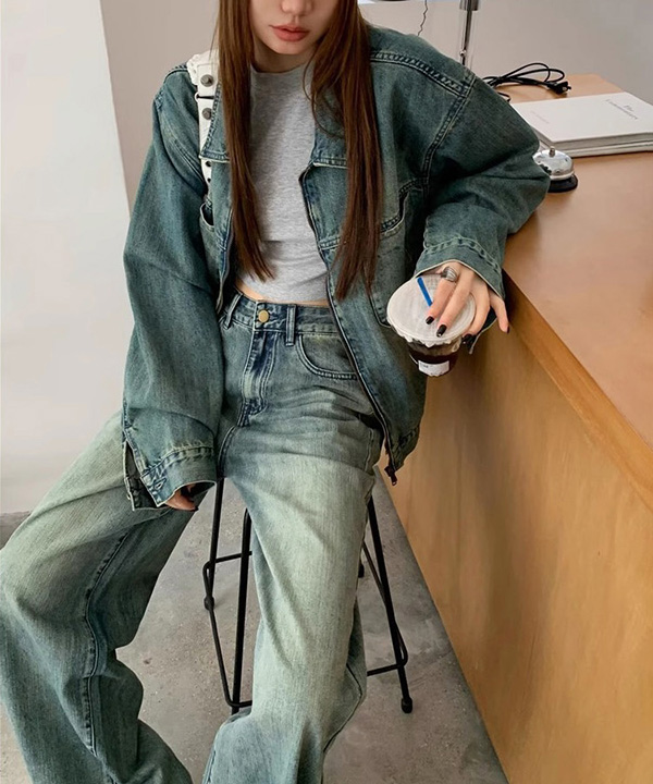 무료배송 [코디세트 자켓+팬츠] 데님배틀 빈티지 청청코디룩 #겨울코디 #셋업