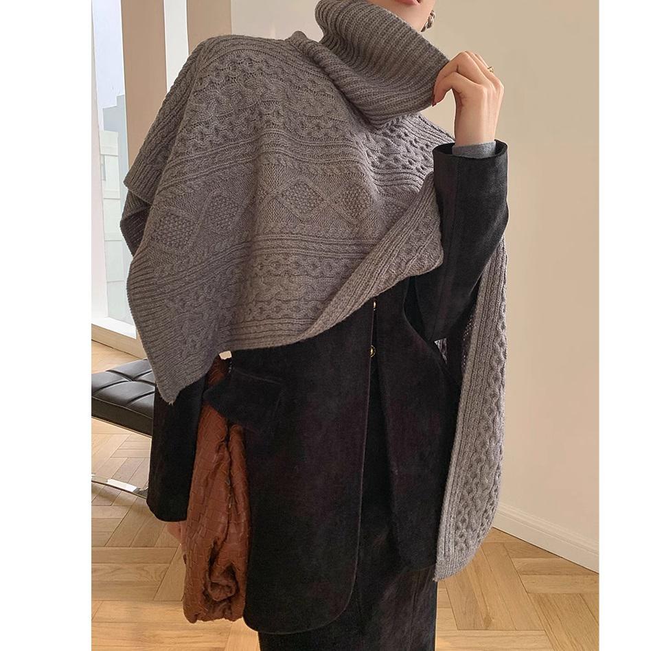 망토 터틀넥 레이어드 머플러 꽈배기 아가일 언발런스 니트 볼레로 넥 케이프