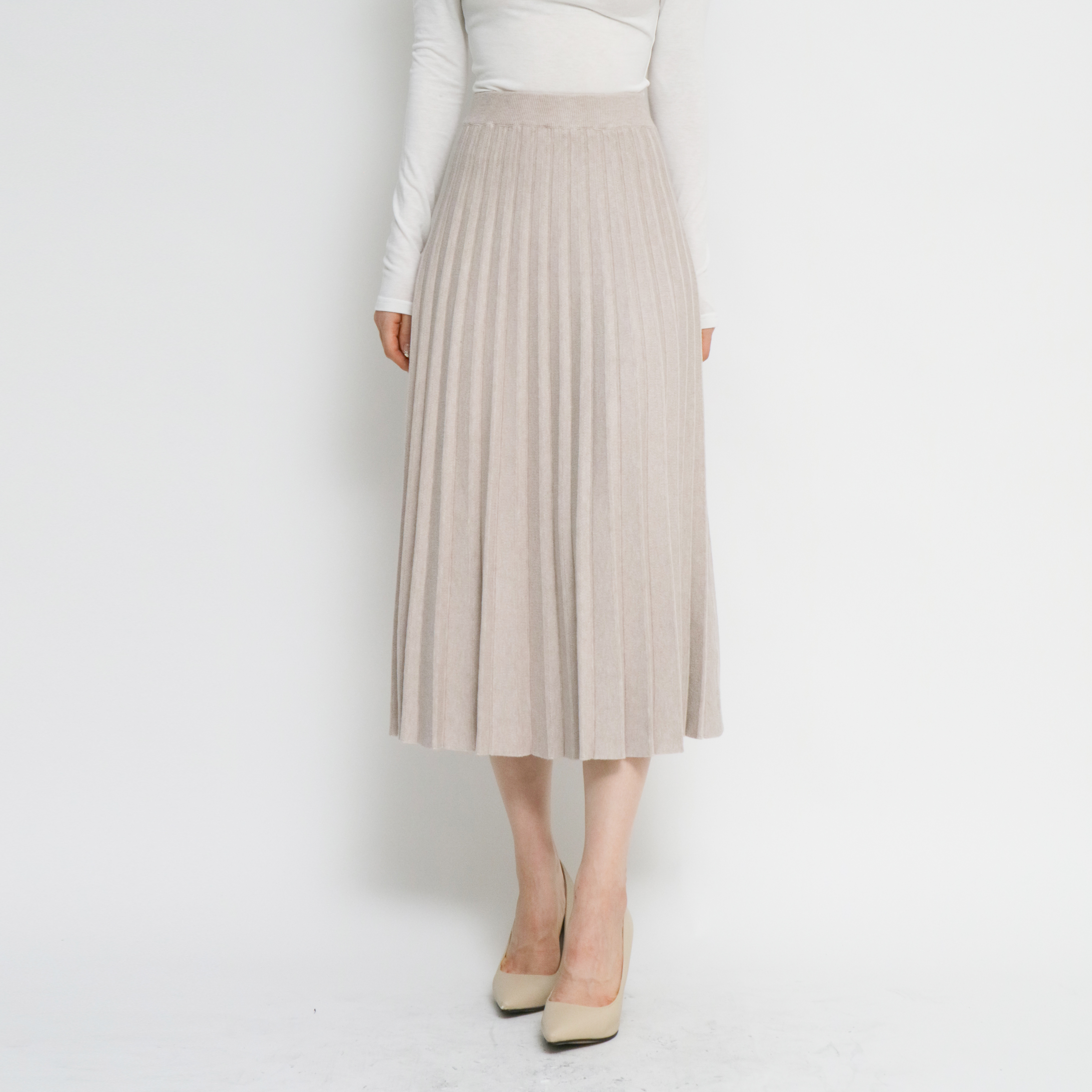 니트 플리츠 주름 밴딩 롱 스커트 5col 빅사이즈 가을 겨울 도톰 따뜻한 고무줄 치마