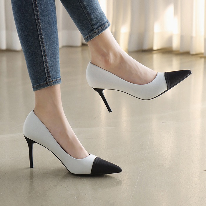 마롱드 배색콤비 슬림베이직 몰드창 하이힐 펌프스(8cm)