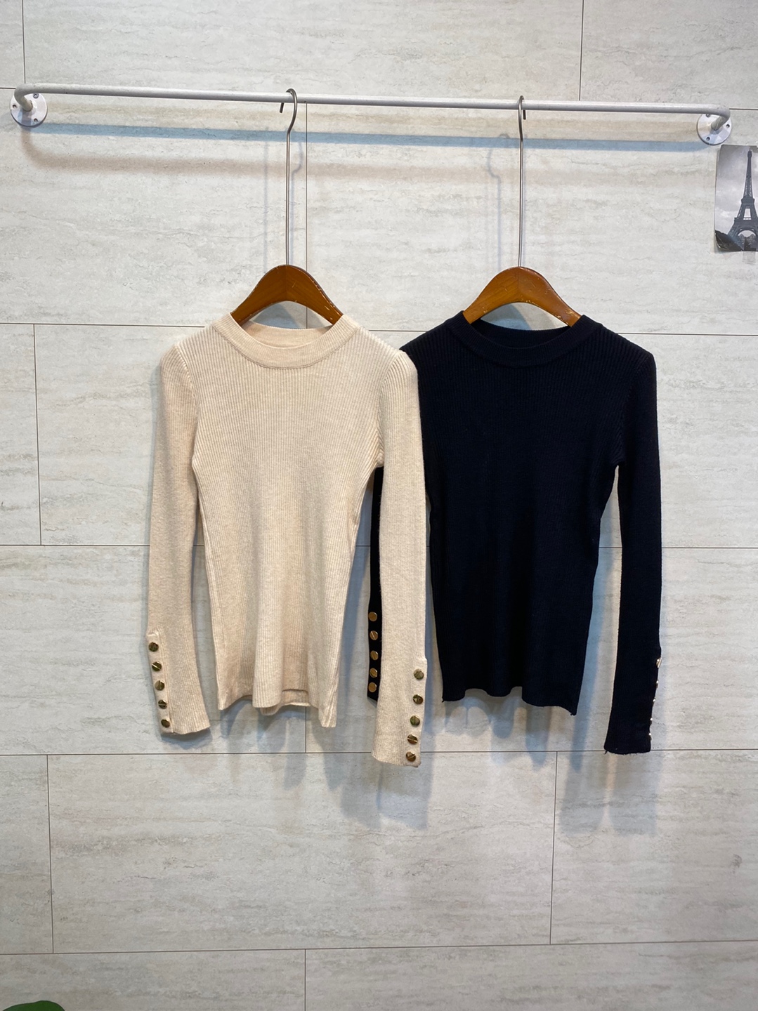 가을 라운드 기본 소매 금장 단추 니트 티셔츠
