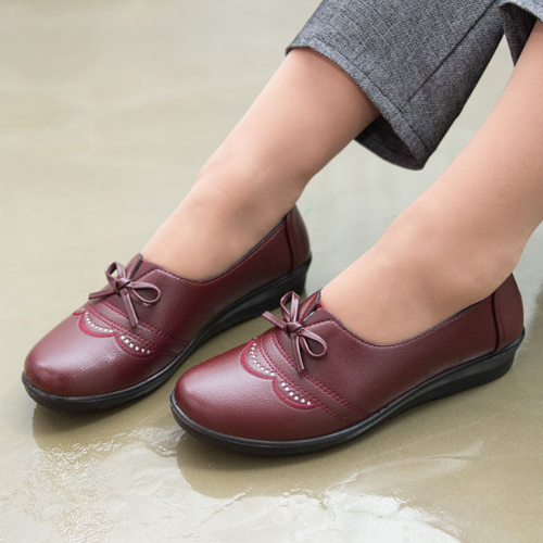 리본 큐빅 발편한 단화 50 60대 엄마 구두 할머니 신발 레드 2.5cm굽