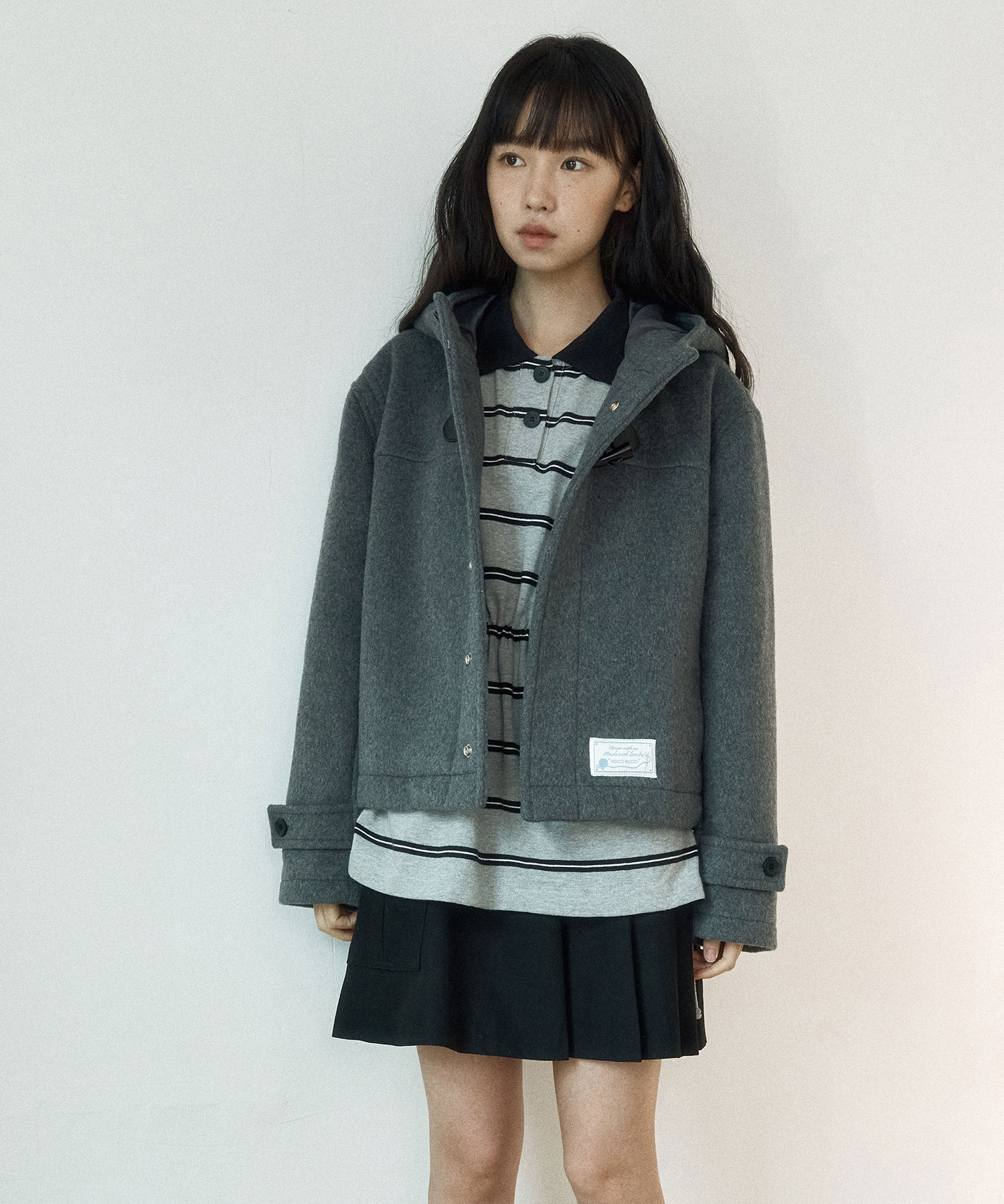 Crop Hood Wool Duffle Coat [MELANGE GREY]