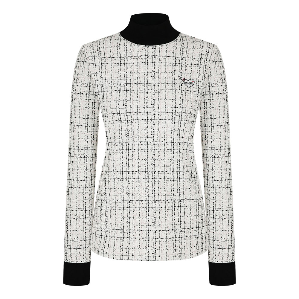 엠바골프 여성 가을 겨울 체크 패턴 반폴라 긴팔 티셔츠 M234LTS007