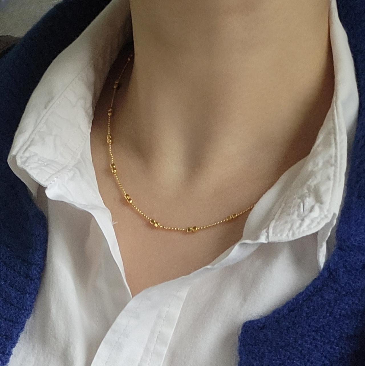 14k GP 더블 골드 스퀘어 금볼 골드볼 체인 여자 금목걸이