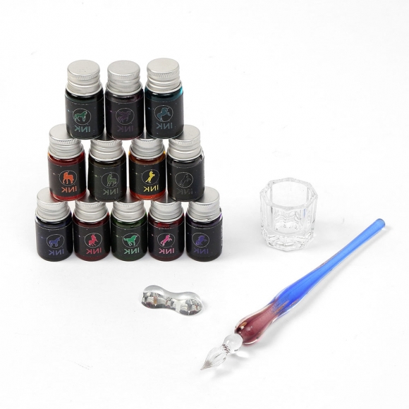 [12색 펄잉크 무료지급] 바이올렛 유리만년필 글라스 딥펜 세트