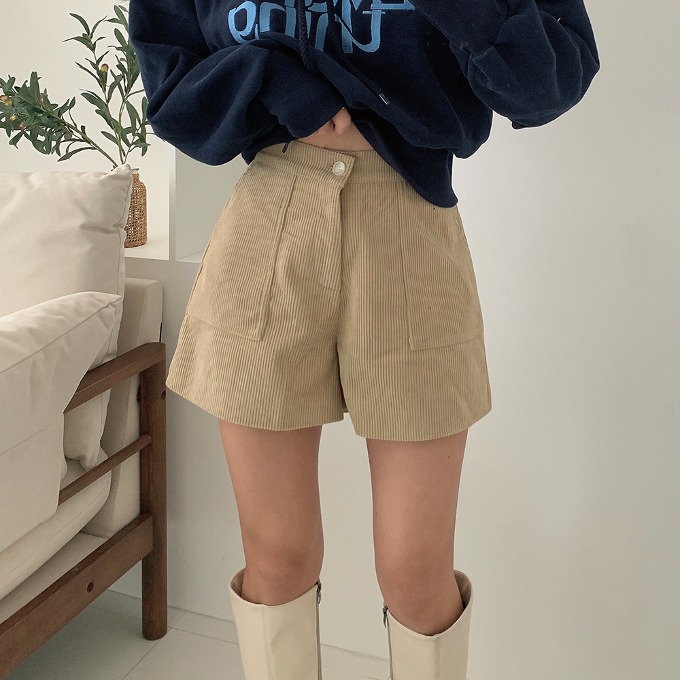 [ 하비강추/뒷밴딩 ] 노딕 A라인 골덴 숏 반바지 (하이웨스트 가을 겨울 숏팬츠 롱부츠코디)