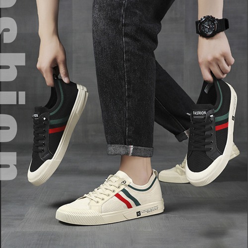 S688 베이지 블랙 빅사이즈 남성 남자 남녀공용 니트 스니커즈 슈즈 메쉬 배색 데일리 끈 운동화 캐주얼 가벼운 신발 통굽 슬립온 2.5cm