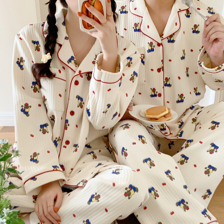 프릴 레이스 곰돌이 누빔 커플 잠옷 겨울 긴팔 공주 순면 퀼팅 빅사이즈 수면 기모 파자마