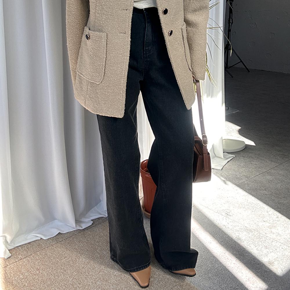 키작녀 여성 기모청바지 흑청바지 세미와이드 하이웨스트 기모바지