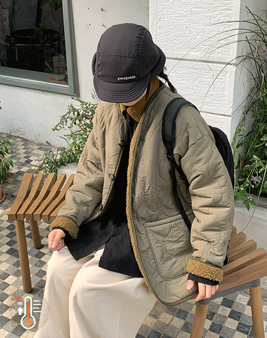 [unisex] 모틸 라운드 퀼팅 양털 패딩 자켓 (4color)