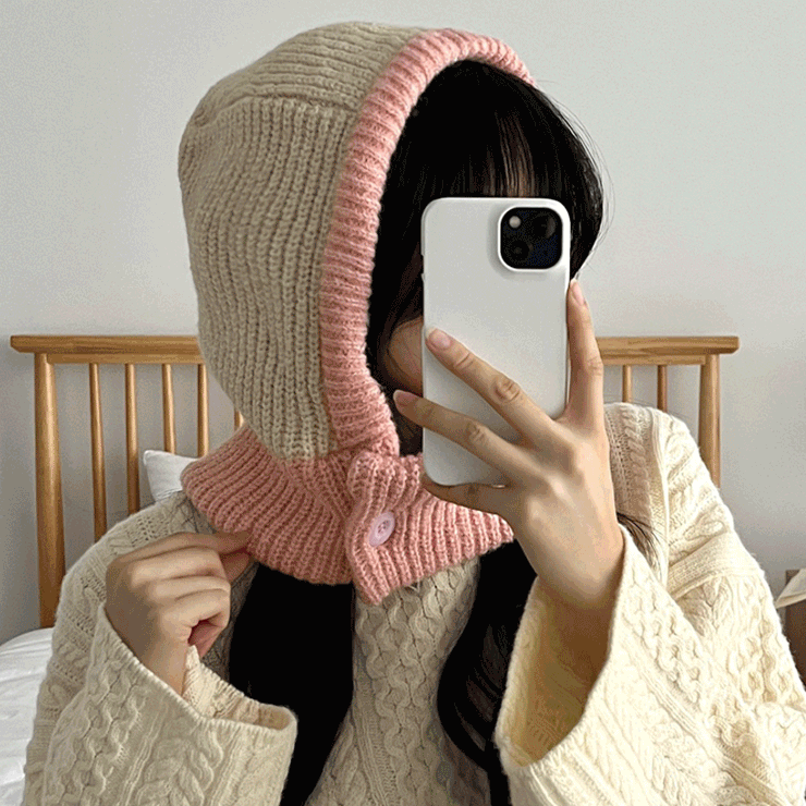도톰 코튼캔디 바라클라바 울 니트 배색 모자 겨울 비니 후드 넥워머 목도리 머플러 no.1771