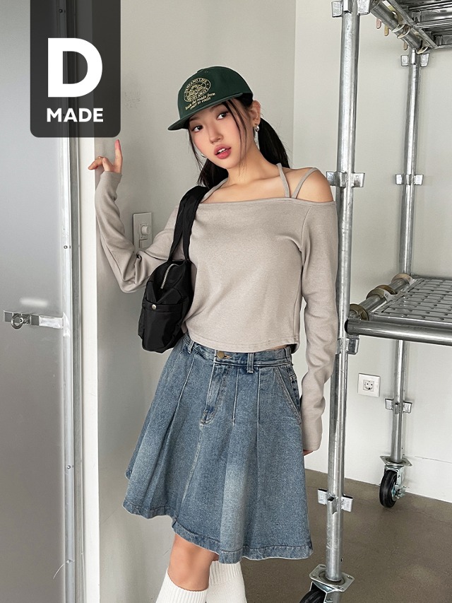 [MADE] 빅사이즈 55-99 수잔 스트랩 오프숄더 크롭 긴팔 티셔츠 하객룩