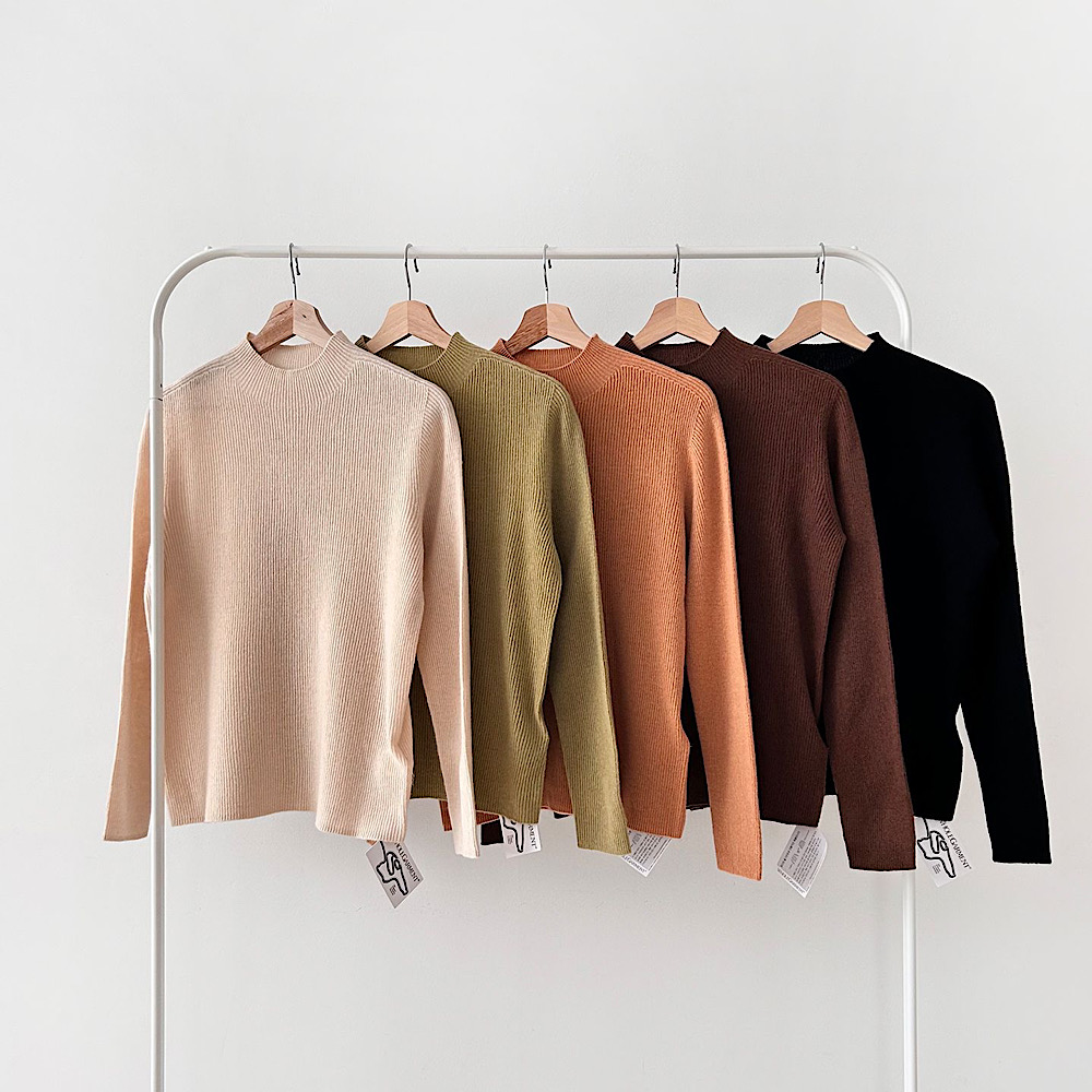 레이어드 니트코디 골지 울 이너 겨울 긴팔 반목 폴라 검정 베이지 브라운 카키 티셔츠