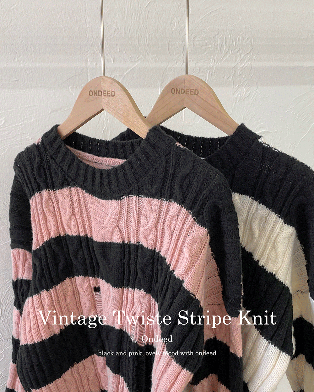키마 빈티지 데미지 꽈배기 스트라이프 니트