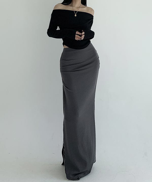 [단독판매/당일배송/힙딥커버]메이비 슬림 사이드 트임 셔링 맥시 롱 스커트(블랙,차콜,라이트그레이)
