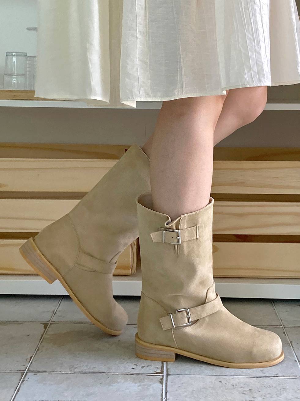 [가을🍁부츠] 버클 스트랩 스웨이드 바이커 미들부츠(3cm)