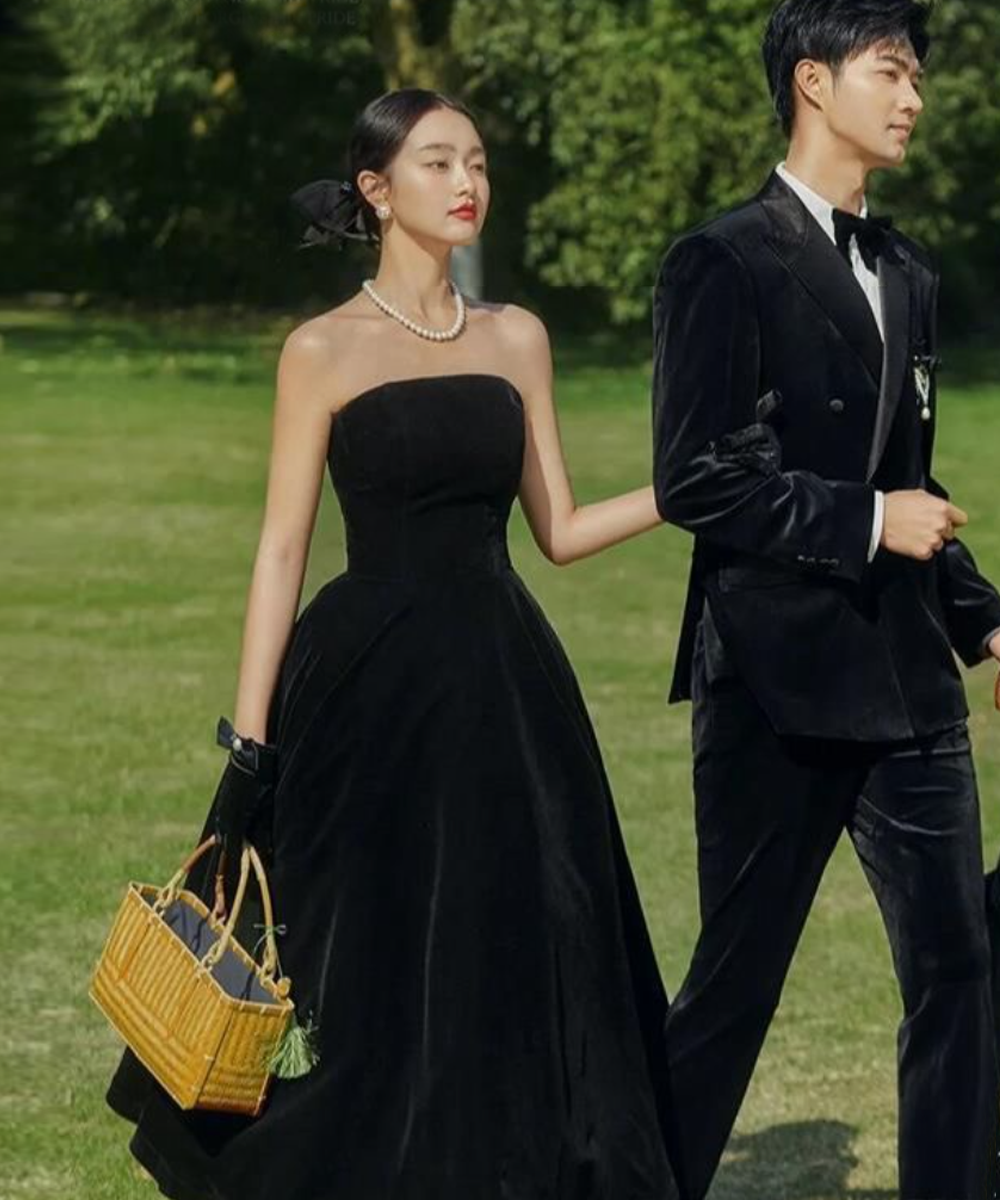 블랙 벨벳 튜브탑드레스 셀프웨딩 연주회 파티 드레스