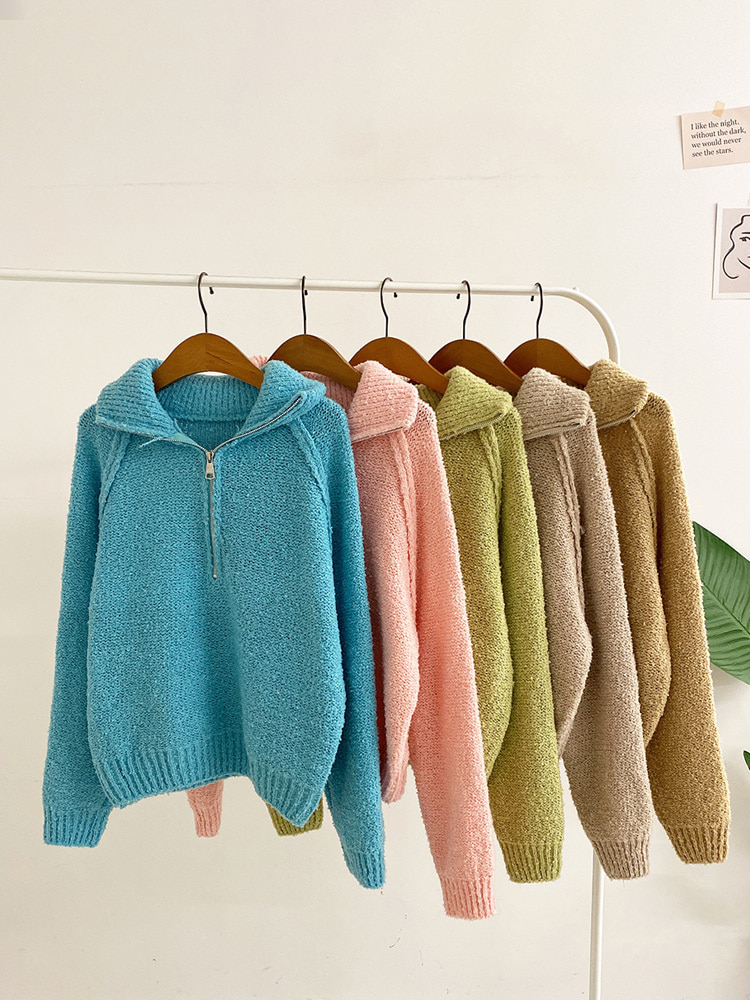 넘벨 부클 카라 반집업 레글런 니트(5color)