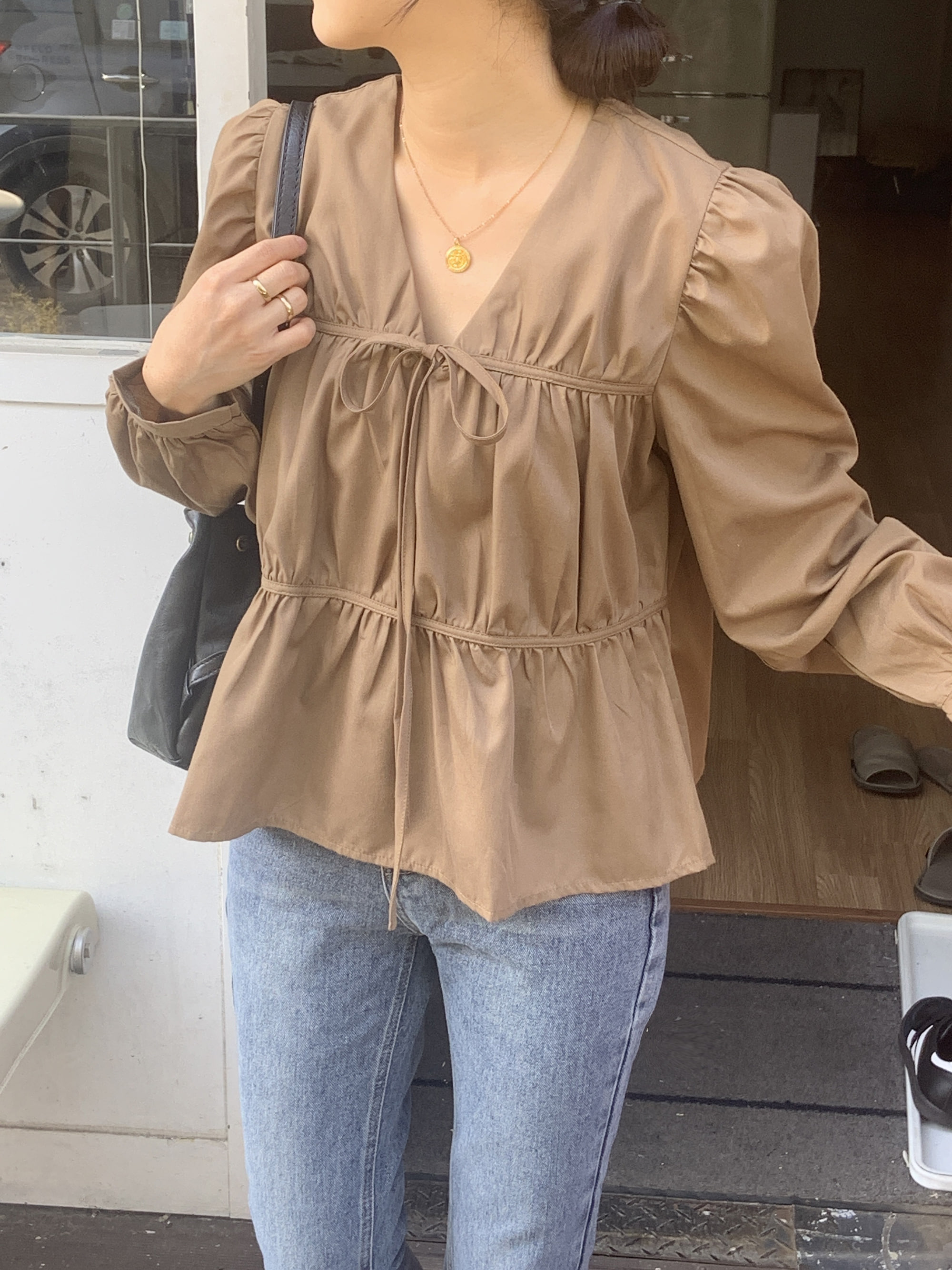브이넥 여자 상의 블라우스 캐주얼 올매치 여성 탑 코디 패션 오피스룩 데일리 가을 겨울 봄 간절기 코디 패션 슬림핏 정장 레이스 프릴 플리츠 플레어 루즈핏 이너티 퍼프소매 상견례 모임룩 연말룩 오피스룩 화이트 블랙