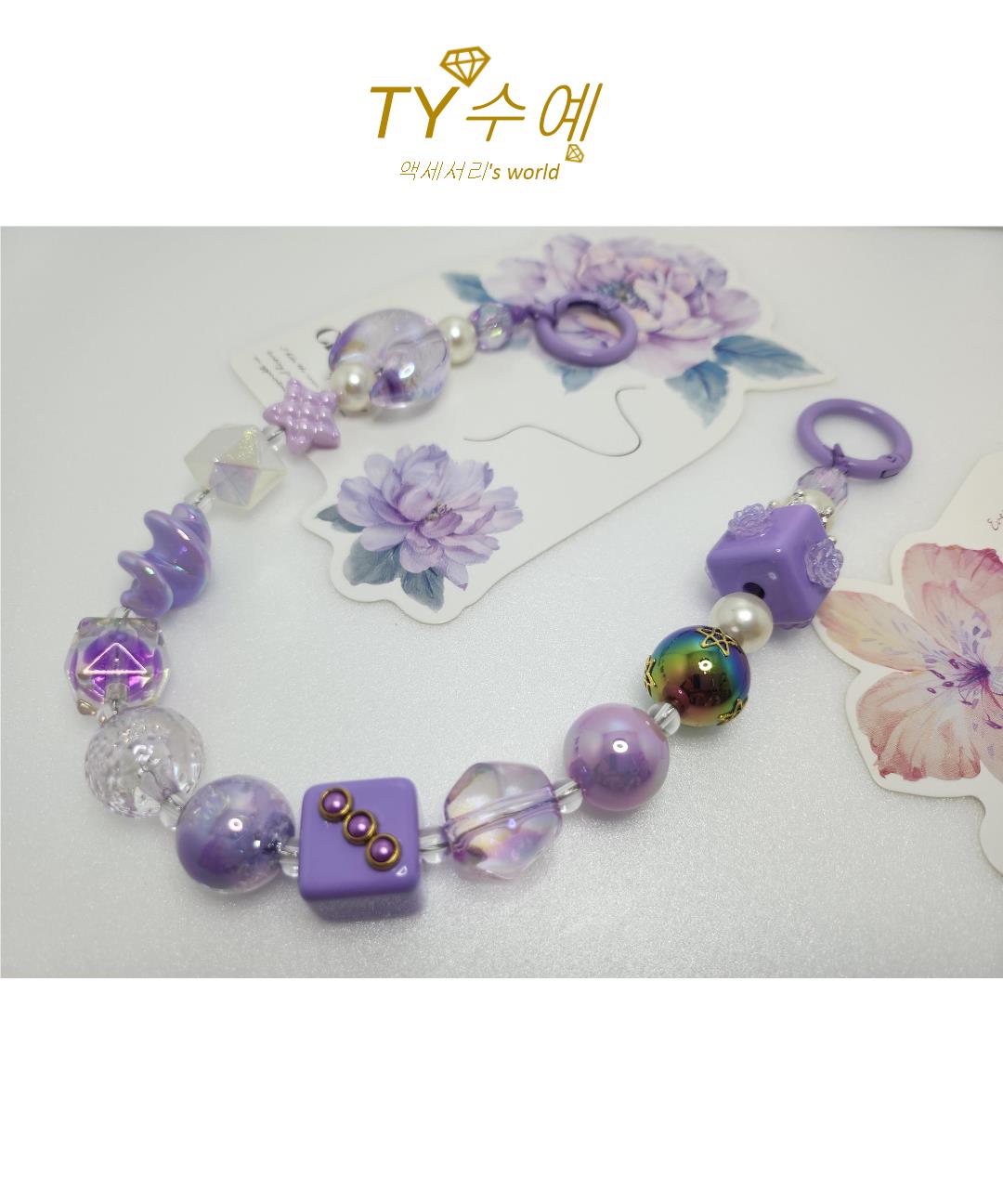 핸드폰 스트랩 가방 열쇠 이어폰 줄고리 보락색 비즈 진주