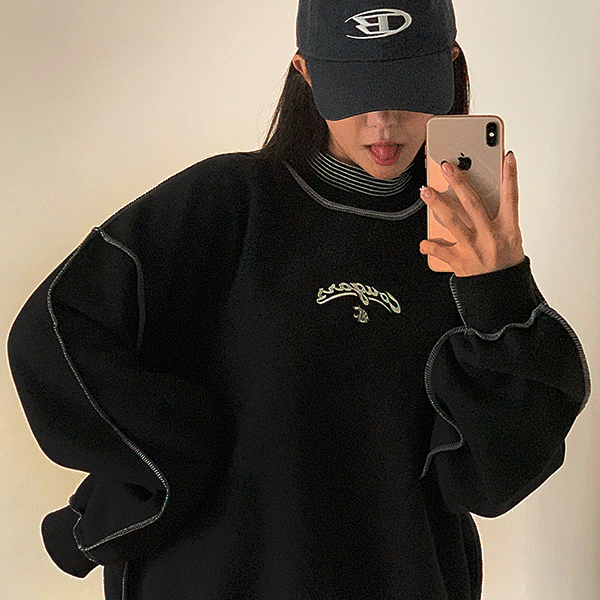 쿠 데끼 스티치 기모 박시핏 맨투맨 - mtm [오버핏,빅사이즈,66-77,남녀공용,남자맨투맨,커플룩,가을신상,겨울신상,가을옷,겨울옷,통통][무료배송]