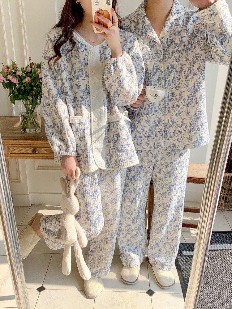 [누빔잠옷] (블룸 커플잠옷) 겨울잠옷 파자마세트 빅사이즈 플라워 꽃무늬 여성 남성