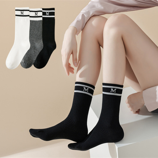 M 라인 여성 긴 패션 양말 여자 삭스 중목 3종세트
