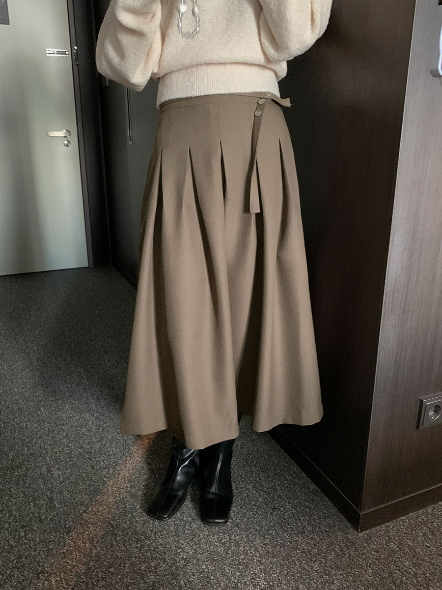 [당일배송] 코모 밴딩 사선 스트랩 A라인 플레어 플리츠 스커트 3color