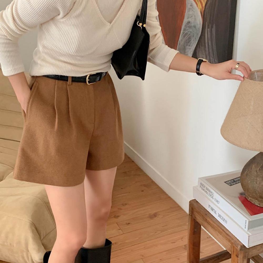 ( SALE ) 겨울 베이직 여성 여자 핀턱 와이드 울 숏 반바지 팬츠 (3col)