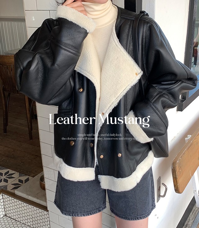 [포근해/퍼안감]본디 레더 무스탕자켓(2color) [퍼자켓 겨울레더자켓 겨울아우터 레더무스탕 라이더자켓 노카라 오버핏 가죽자켓 더블버튼 하프레더 겨울코트 숏코트 캐주얼 출근룩 캠퍼스룩 하객룩]