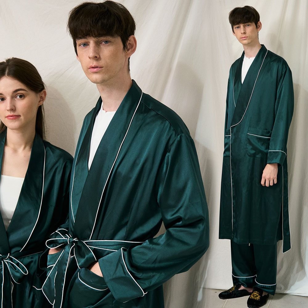 로브가운 실크 나이트가운 홈웨어 ~120cm 롱기장 파자마가운 잠옷 (그린)
