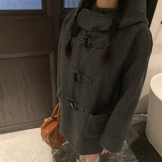 모트 차콜 후드 하프 떡볶이 더플 코트 자켓