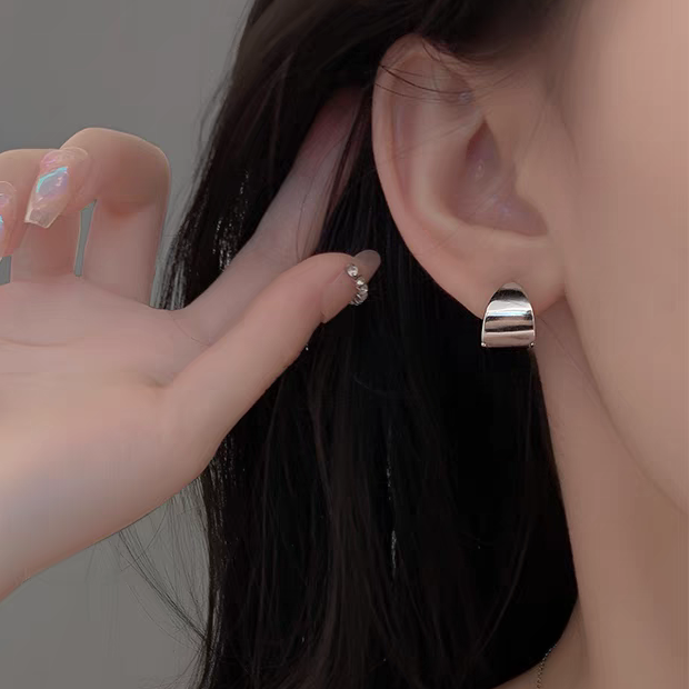 [당일출고] 볼드 심플 데일리 트라이앵글 원터치 링 귀걸이 [실버] N025